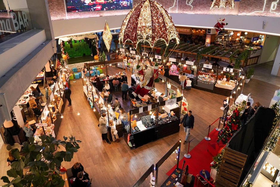 Posetioci razgledaju izloge, šetaju, razgovaraju, probaju odeću, obuću, pažljivo biraju ambalažu za poklon - kese ili ukrasni papir, još jedna odluka u novogodišnjoj kupovini.