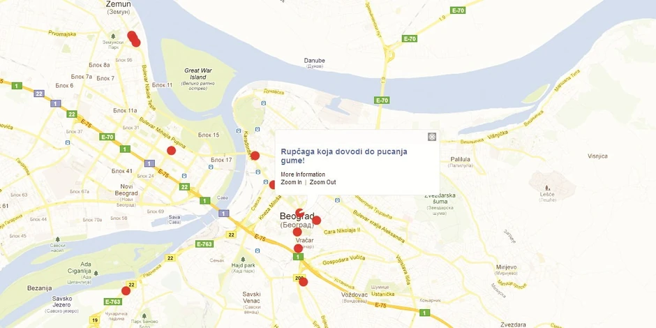 - Na adresi rupanaputu.crowdmap.com napravljena je mapa i tu građani mogu da prijave udarne rupe. Sve što građani prijave, vidljivo je na sajtu. Servis, ako zaživi, može da bude veoma koristan za „Beograd put“, da vide koji delovi grada su najoštećeniji i da na osnovu toga eventualno odrede prioritete popravki - kaže Nina.