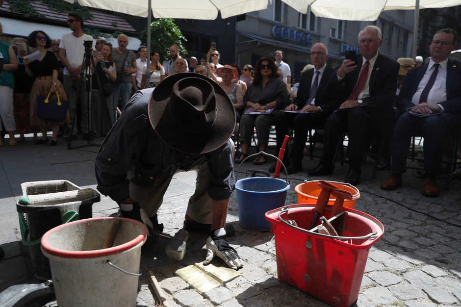 Na kraju svečanosti, umetnik i idejni tvorac, Ginter Deming je položio kamenove i "posadio" ih na beogradskoj kaldrmi.