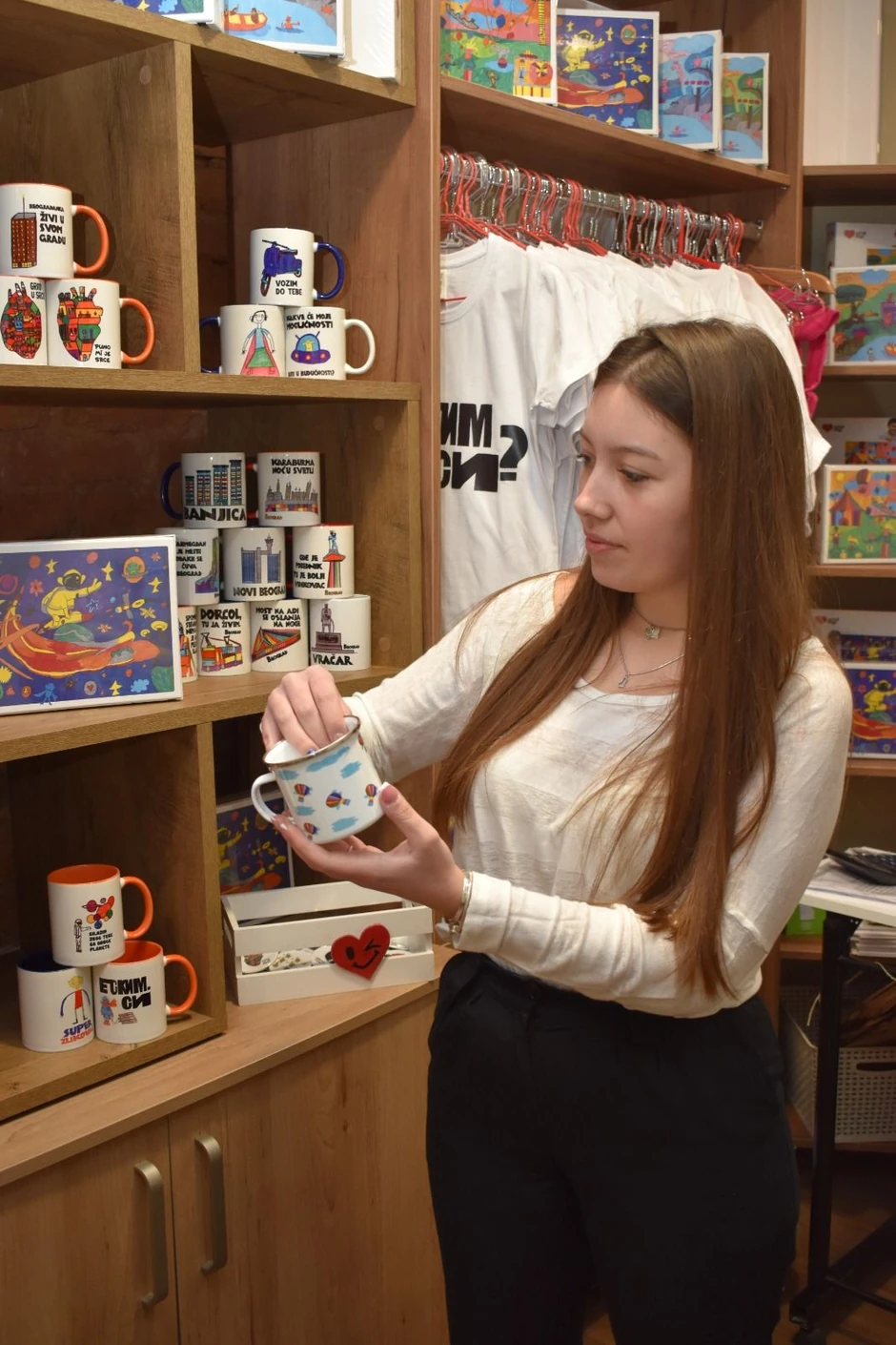 Ova jedinstvena kafe radionica bavi se izradom suvenira, torbi, majica sa štampom, bedževa, a za dizajn, ideje i izradu su upravo zaduženi ti nasmejani ljudi kojih trenutno ima oko dvadeset dok je pod ugovorom zaposleno njih osam.