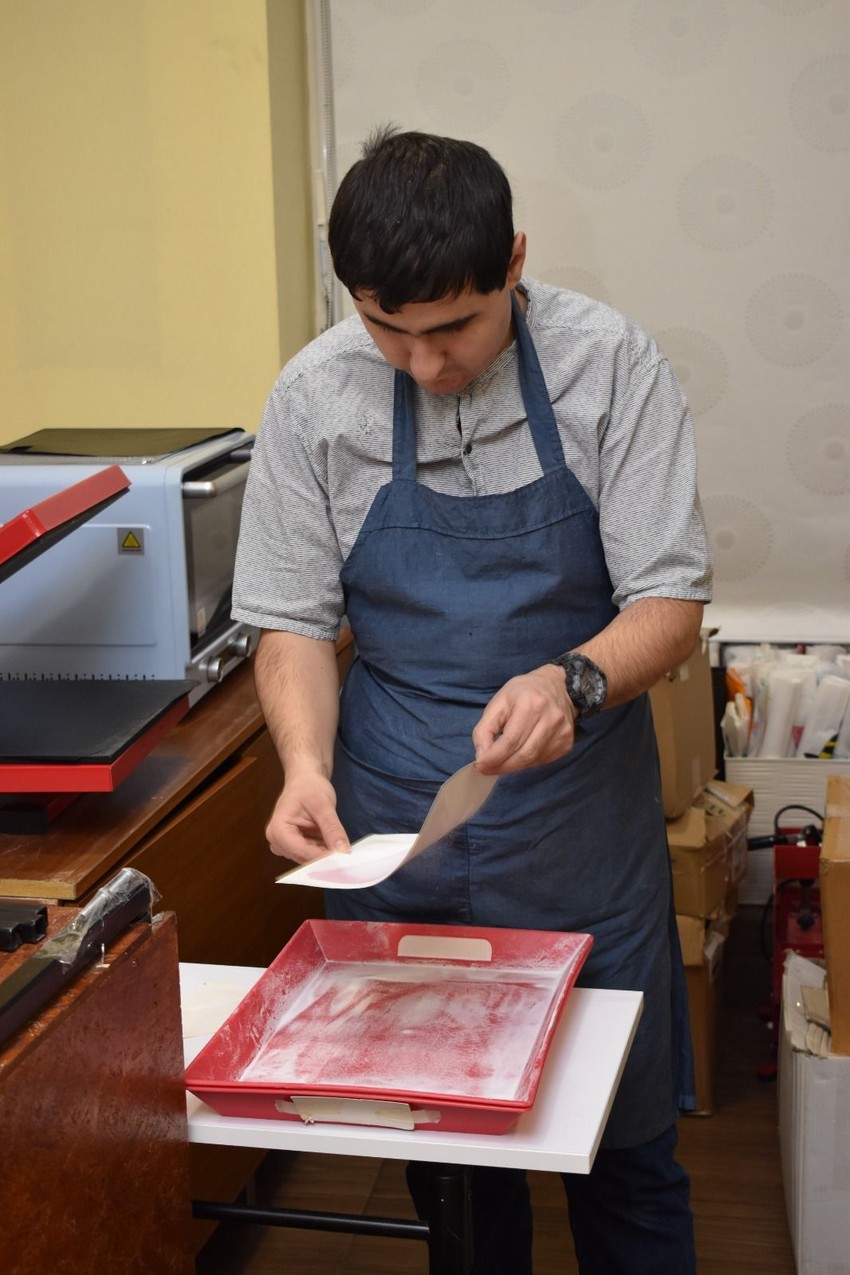 Obilazimo i radionicu gde se upoznajemo sa načinom izrade aplikacija na majicama i torbama od samog dizajna pa do konačnog proizvoda.