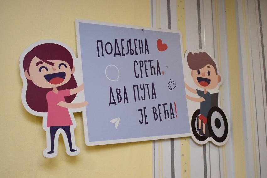 Kroz objekat nas je provela Ivona Rojević, radni instruktor. Ona nas je upoznala sa osobljem i konceptom rada sa ljudima sa smetnjama u razvoju.