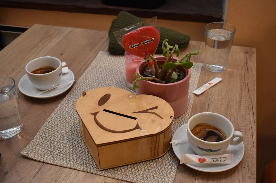 - Kafe radionica "Zvuci srca" su ustvari filijala humanitarne organizacije "Dečije srce" koje postoji 20 godina i koje se bavi pružanjem podrške osobama sa smetnjama u razvoju i njihovim porodicama, koje kroz razne aktivnosti rade na osamostaljivanju tih osoba i njihovoj inkluziji u društvo. Sama kafe-radionica postoji četiri godine i jako je posećena, ljudi dolaze da popiju kafu a izlaze sa osmehom na licu- kaže Ivona, koja inače studira defektologiju - priča nam.