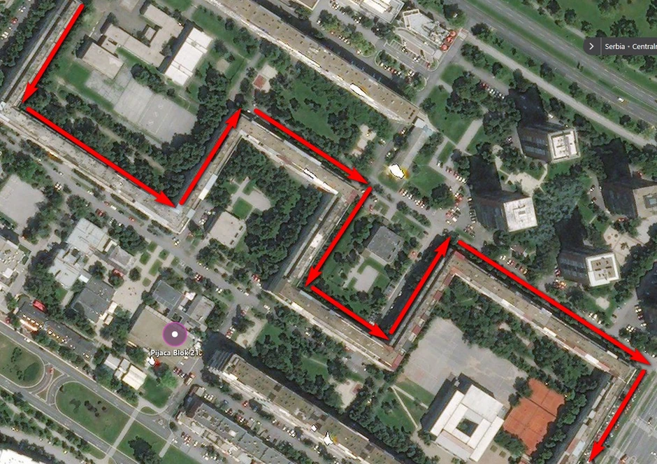 Lamele poređane kao devet domina čine tu zgradu jedinstvenom po veličini, ali i po činjenici da ima 62 ulaza na četiri različite adrese - raspoređene između bulevara Mihajla Pupina i Zorana Đinđića, te ulica Milentija Popovića i Antifašističke borbe, objašnjava glavni gradski urbanista Marko Stojčić.