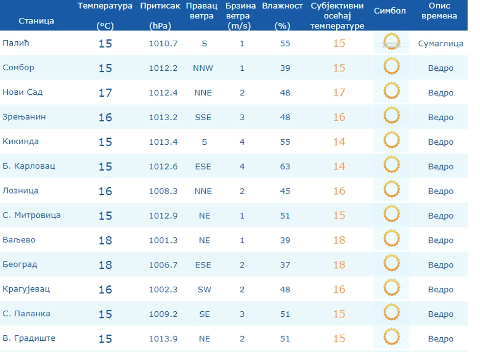 Naime, Beograd i Valjevo su najtopliji gradovi u Srbiji prema preseku Republičkog hidrometeorološkog zavoda (RHMZ) u 14 časova, gde je u oba ova grada izmerena temperatura od 18 stepeni, a maksimalna prognozirana je 19.