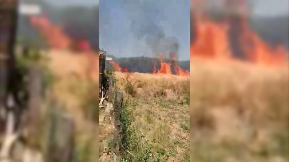 Na snimku se vidi i da je dobar deo rastinja već izgoreo, jer je jedan dobar deo livade potpuno crn.