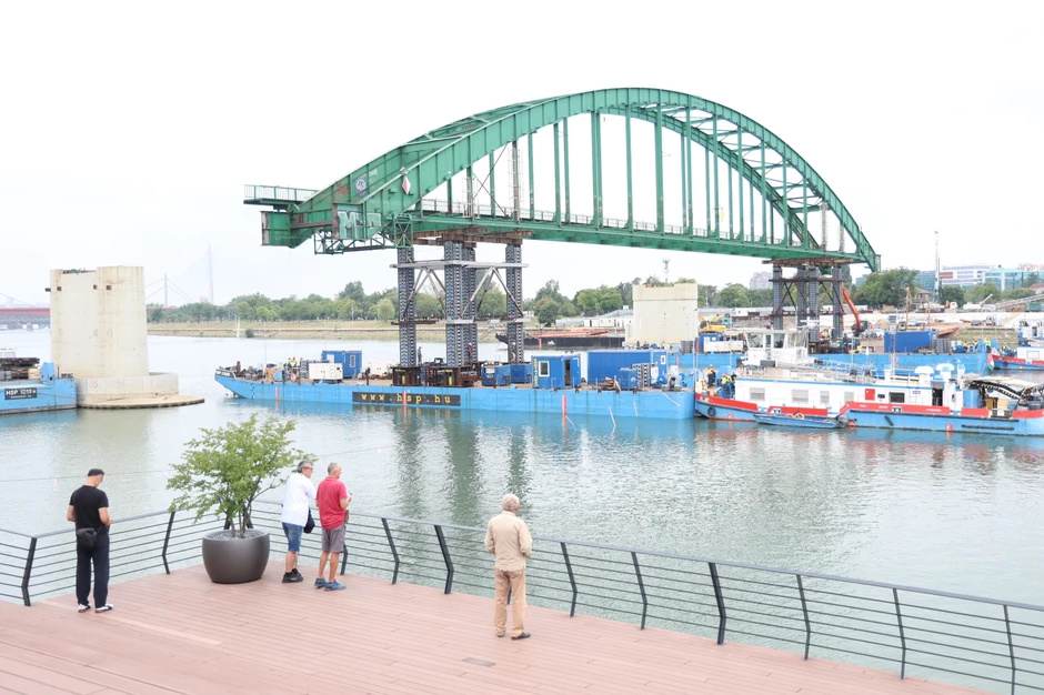 Kako je Lazar Pavić, inženjer za mostove, otkrio sa lica mesta pripreme su počele još juče kada su na baržama montirane čelične konstrukcije stubova, koje se sastoje od kasetnih elemenata, te su hidraulikom podizane komad po komad do potrebne visine.