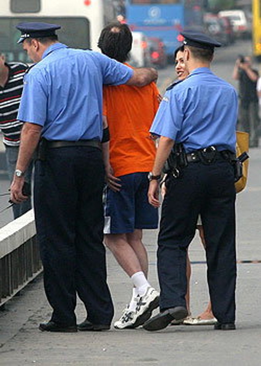 Mirko, koji je sve vreme stajao okrenut licem ka vodi, tad se okrenuo, naslonio ruke na ogradu i počeo da razgovara sa manekenkom. Posle svega nekoliko minuta, Katarina je uspela da ga ubedi da se predomisli. U jednom momentu, pružila mu je ruku, a on je uhvatio i preskočio ogradu.