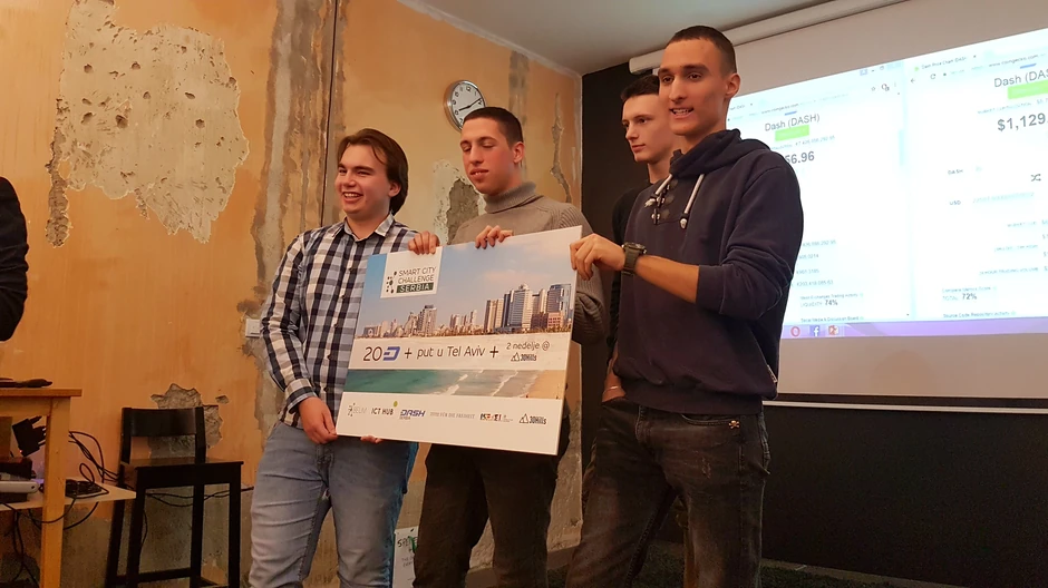 Učenici ETŠ "Nikola Tesla" osvojili su 25.000 dolara u kriptovaluti "Dash" pobedivši na takmičenju "Smart City Challenge Serbia" sa projektom pametnih stepnica koje proizvode struju.