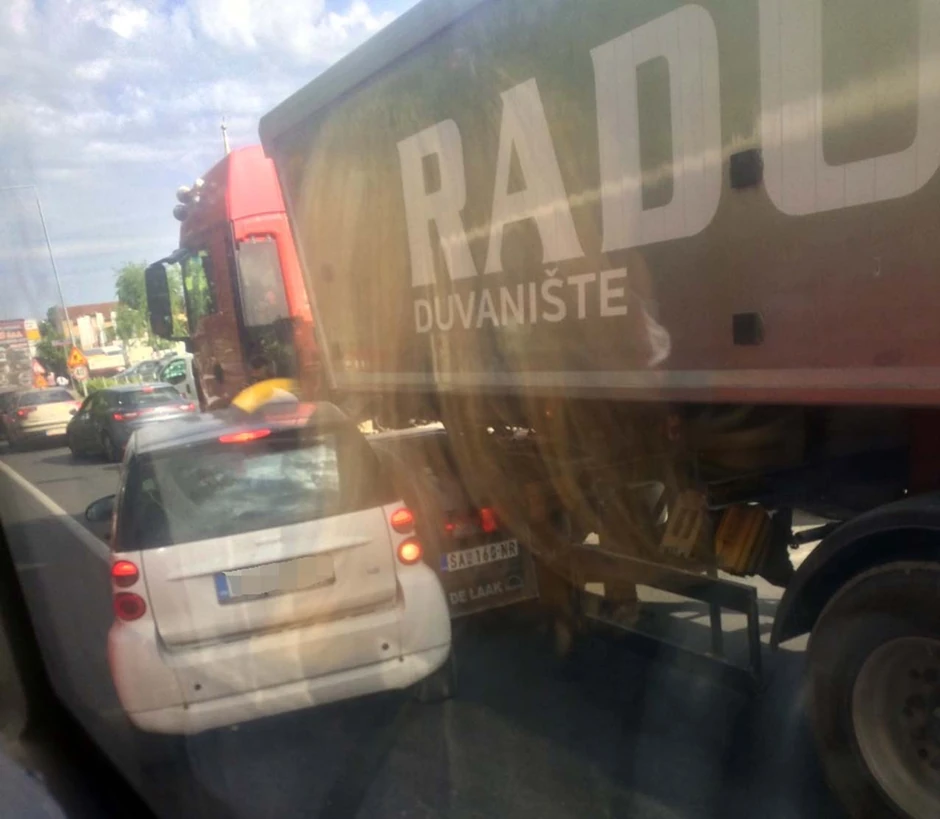 Kako javlja "Blicov" reporter sa lica mesta, automobil je udario u teretno vozilo nakon čega su se formirale duge kolone vozila.
