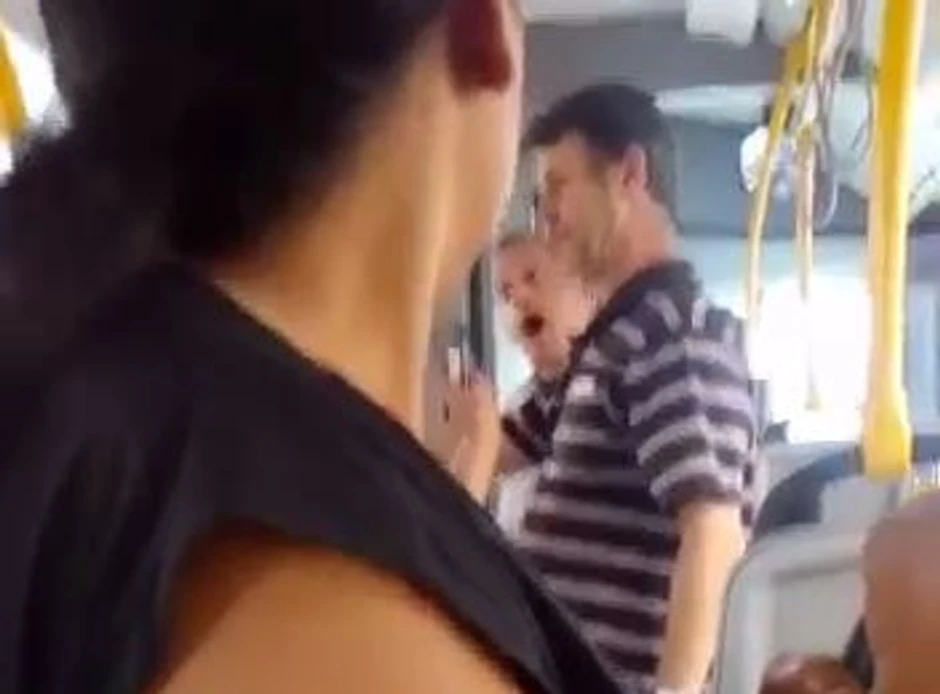 Neko je u tom trenutku uspeo da otvori srednja vrata silom, a majka je izašla sa bebom dok su putnici nastavili raspravu zatočeni u vozilu koje je stajalo na stajalištu.