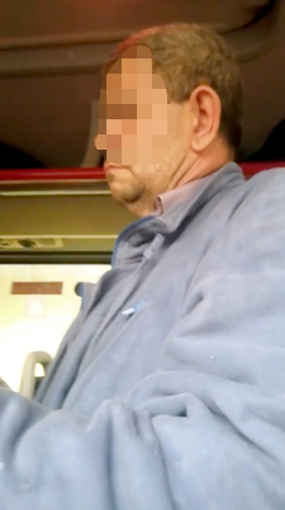 Na snimku se vidi stariji čovek koji stoji zbijen uz putnicu do sebe i okrenut ka njoj, a jedna ruka mu stoji u vrlo dikutabilnom položaju. U prvi mah se čini da žena kraj njega nije obratila pažnju jer je verovatno mislila da muškarac do nje nema mesta pošto je gužva u autobusu. Međutim, u nekom trenutku, ona je pomerila svoju torbu kako bi je stavila između njih dvoje i tako se zaštitila od napasnika.