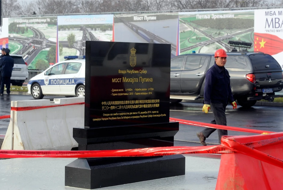 - Mermernu tablu za most je pripremila i izradila kineska strana kao poklon povodom otvaranja mosta Zemun-Borča, kažu za "Blic" u Ministarstvu građevinarstva, saobraćaja i infrastrukture.