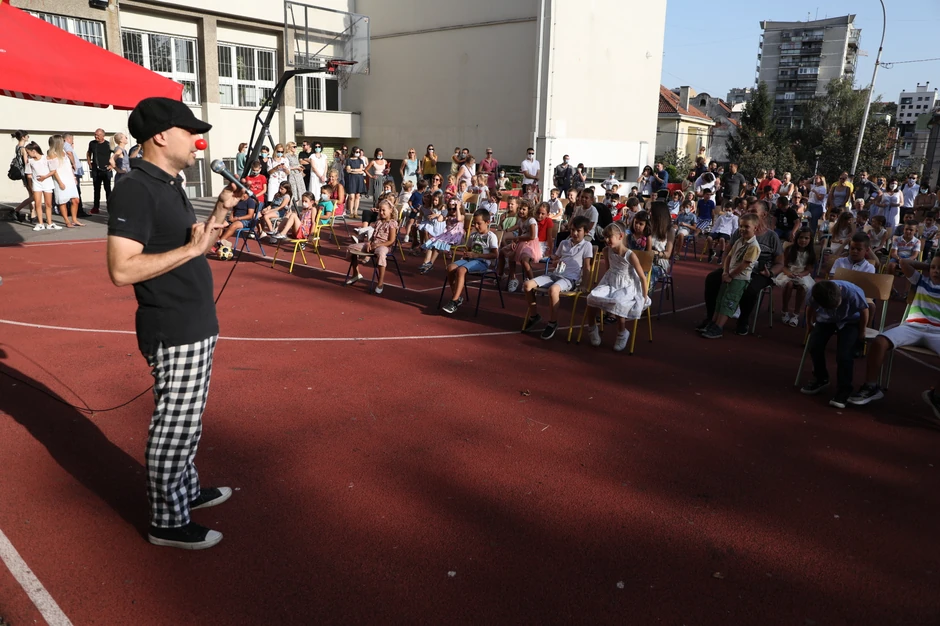 - Odeljenja su podeljena na dve grupe. Grupa A pohađa nastavu od 8.00, dok druga grupa u školu dolazi od 11.00 sati. Stariji razredi će u školu takođe dolaziti u dva termina, kako bismo mogli da ispoštujemo sve propisane mere. Osim ovog zvaničnog prijema za prvake, sutra će biti organizovan i prijem za učenike koji polaze u peti razred - kaže za "Blic" Ivana Orolicki, direktorka škole.
