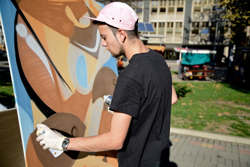 Mladi umetnici crtali su danas grafite na panoima na platou ispred opštine Zvezdara, da bi ukazali na razliku između umetničkih grafita i natpisa, navijačkih parola i poruka mržnje.