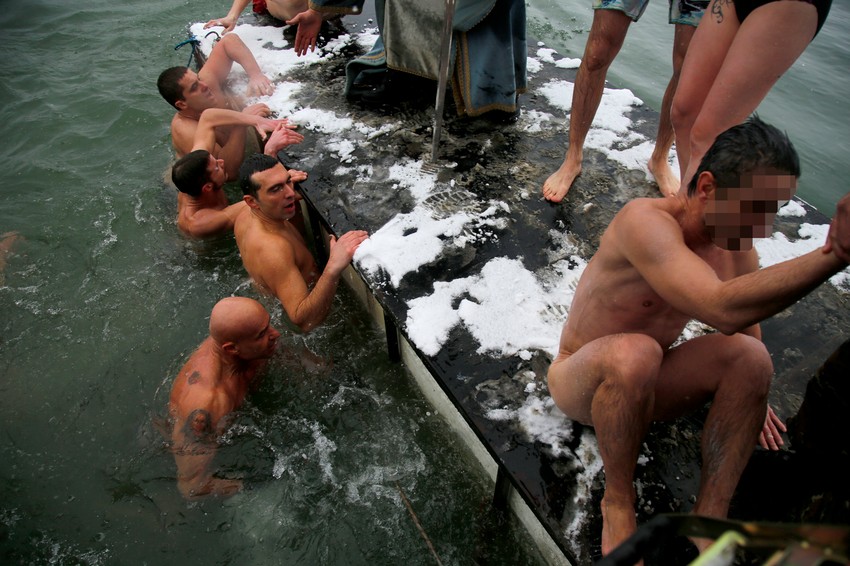 Da li su gaćice spale posle samog skoka, pitanje je. Ono što je sigurno da je učesnik ostao dosledan i plivao sve do krsta.