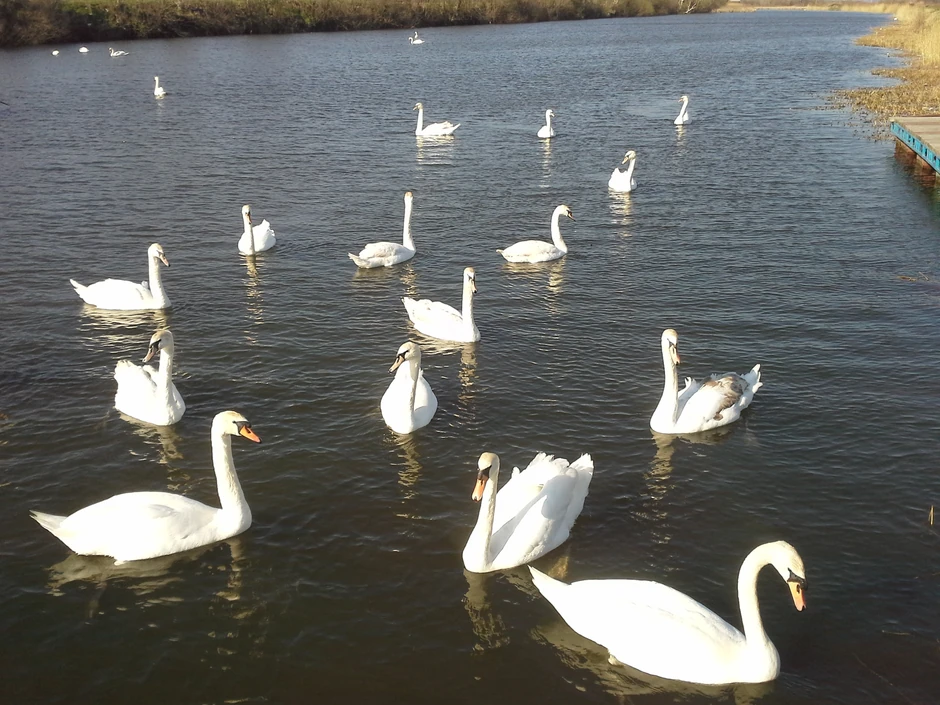 Jato belih labudova uživa jutarnjem suncu (Foto: Č.L. / RAS Srbija)