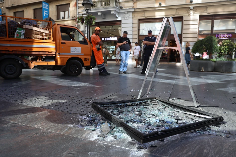 Na lice mesta stigle su policijske ekipe i ekipe Gradske čistoće koje čiste staklo sa pločnika.