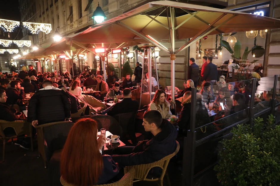 S obzirom na to da je neuobičajeno toplo vreme za ovo doba godine, bašte kafića na Terazijama su otvorene i pune ljudi.