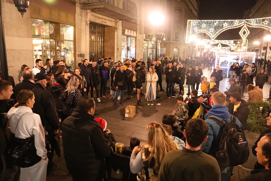 Centralni delovi Beograd - Knez Mihailova, Terazije i Trg Republike, večeras su po gotovo prolećnom vremenu prepuni ljudi, koji su izašli da na otvorenom dočekaju Novu godinu u srpskoj prestonici.
