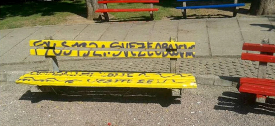Deo mobilijara u parku "Palas" na Topličinom vencu, koji su juče uredili volonteri Kancelarije za mlade, osvanuo je danas oštećen i iscrtan grafitima crnim lakom. It Kancelarije za mlade žale zbog nepoštovanja truda.