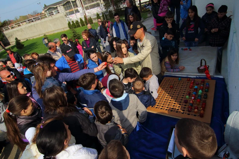 Tradicionalno druženje za najmlađe - dečje takmičenje u kucanju uskršnjim jajima, održano je danas u porti crkve Svete Trojice u Grockoj.