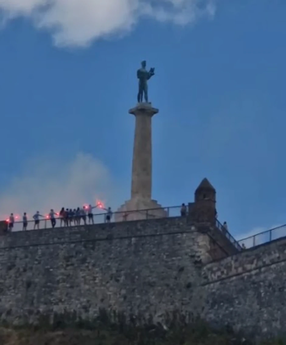 Kako "Blic" saznaje intervencija je u toku i vatrogasci gase nisko rastinje i travu koja se zapalila u dodiru sa bakljom na Kalemegdanu.