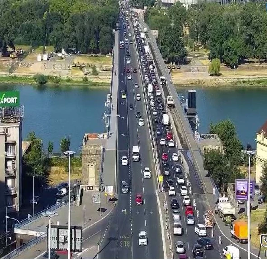 Na Brankovom mostu su još veće gužve zbog toga što je krajnje desna traka u smeru ka Novom Beogradu zatvorena za saobraćaj zbog radova tako da su vozačima na raspolaganju samo dve saobraćajne trake.