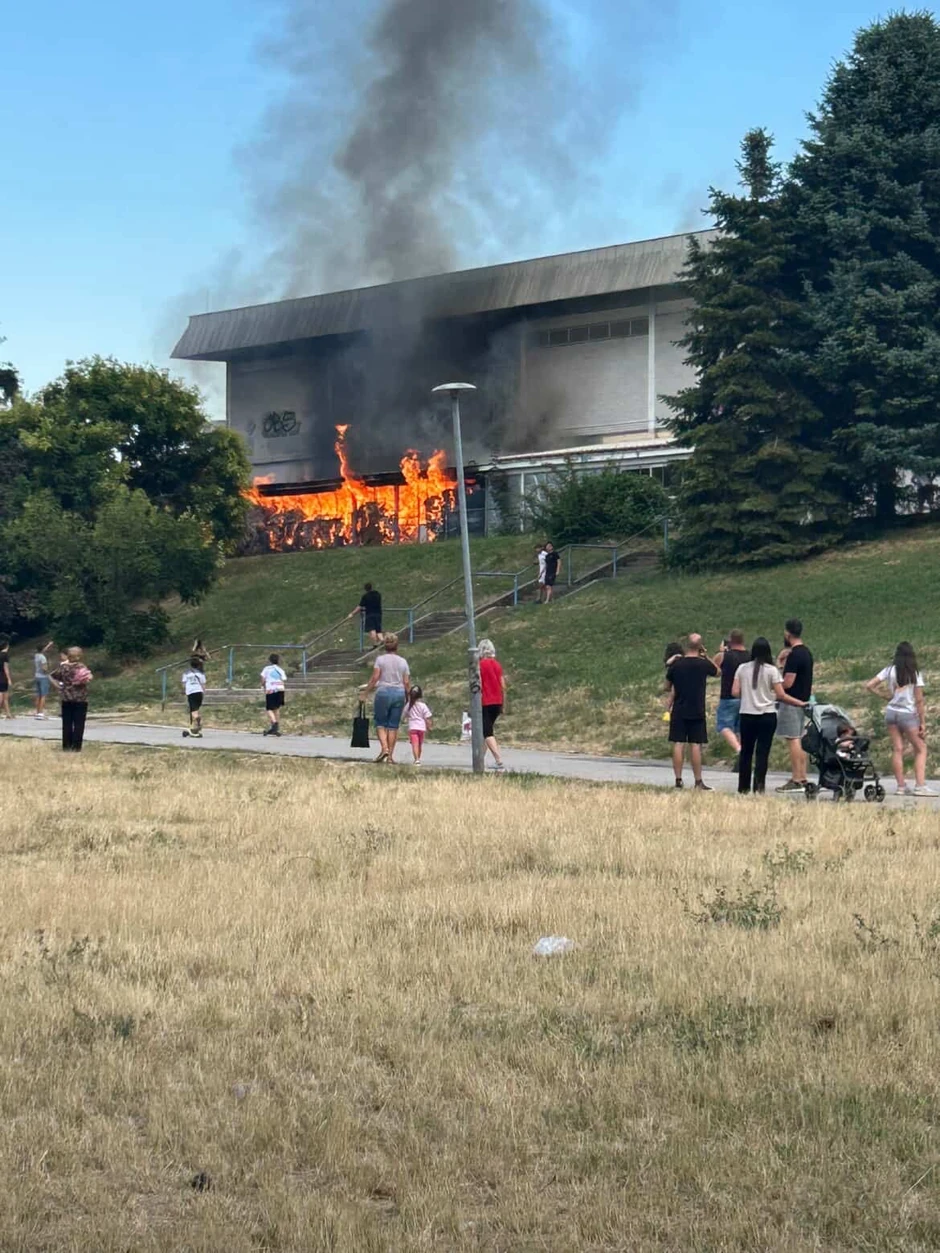 Kako se vidi na fotografijama i video-snimcima, gusti dim kulja, a vatra je zahvatila prilično veliki deo objekta.