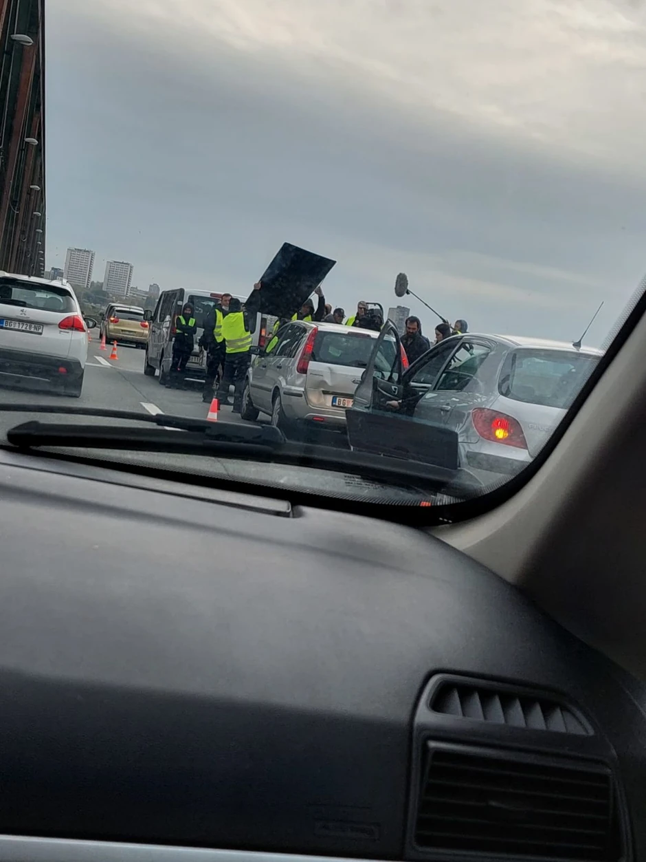 Na Pančevačkom mostu, u smeru prema gradu, napravljen je veliki zastoj zbog snimanja filma.