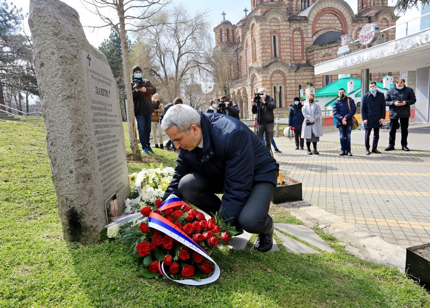 - Kod spomenika "Zašto" okupljamo se više puta tokom godine i sećamo se 16 radnika RTS-a koji su stradali tokom NATO bombardovanja. Ovo bombardovanje je u novijoj istoriji Evrope i sveta pokazalo da je sve moguće. Moguće je bombardovati jednu suverenu demokratsku zemlju u Evropi, moguće je to uraditi bez odluke Saveta bezbednosti. Bilo je moguće da se 19 zemalja članica NATO pakta u 78 dana neprekidnim bombardovanjem obruši na Saveznu Republiku Jugoslaviju, a sve u cilju da se otme sastavni deo naše zemlje, Kosovo i Metohija – rekao je Mladenović.