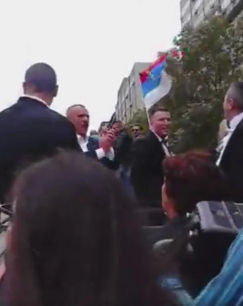 Naime, otvoreni autobus bio je deo slavlja - dolazak pred crkvu upriličen je za svatove na neobičan način, tako da osim što su podelili divnu uspomenu najbližih, uživali su u panorami prestonice sa sve muzikom i bajrakom. Verovatno je deo rodobine stigao na venčanje iz drugih gradova, pa su mladenci želeli da im pokažu šta ih je to spojilo, pa možda i navelo da se zaljube jedno u drugo. Mi im u svakom slučaju, čestitamo na divnom početku braka!