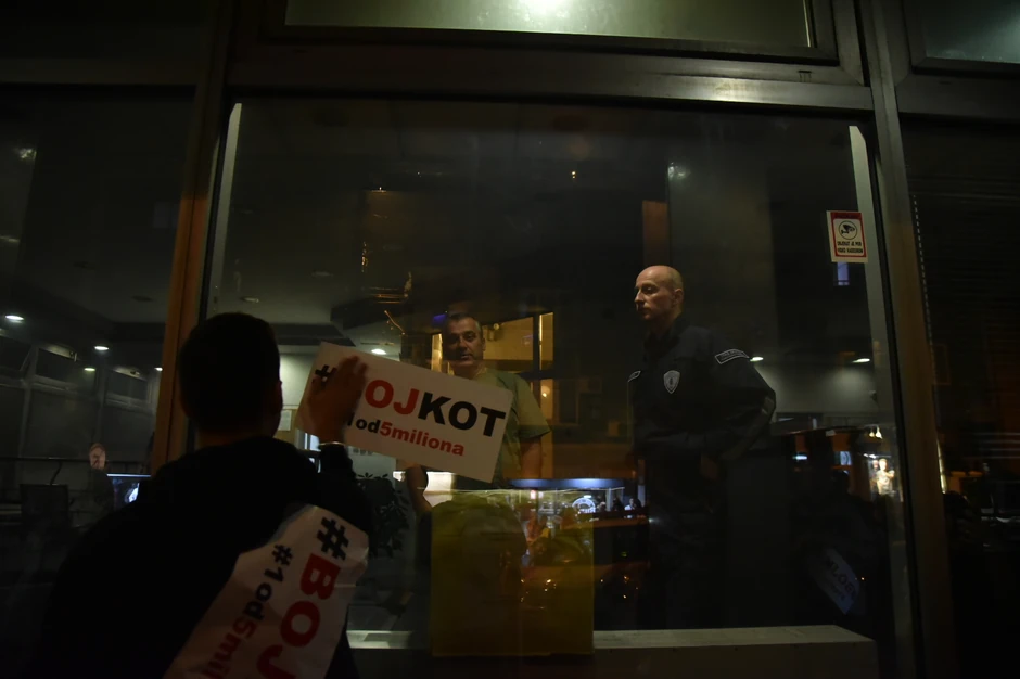 Zamenik gradonačelnika Goran Vesić, ispred čije su zgrade večeras učesnici protesta “1 od 5 milona” palili baklje i skandirali uvredljive poruke, upozorio je lidera Saveza za Srbiju Dragana Đilasa “da će biti lično odgovoran ako se bilo šta dogodi nekom od članova njegove porodice”.