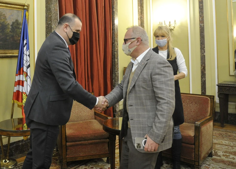On je tokom prijema zameniku gradonačelnika Goranu Vesiću uručio zahvalnicu za dobru organizaciju prošlogodišnje trke.