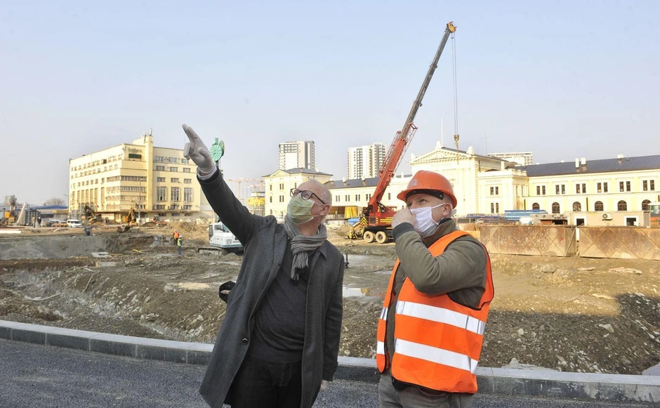 Vesić je istakao da se ispred stare zgrade Železničke stanice završavaju potporni zidovi i betonska ploča, kao i da počinje postavljanje granitnih ploča za podijum koji će služiti za državne manifestacije.