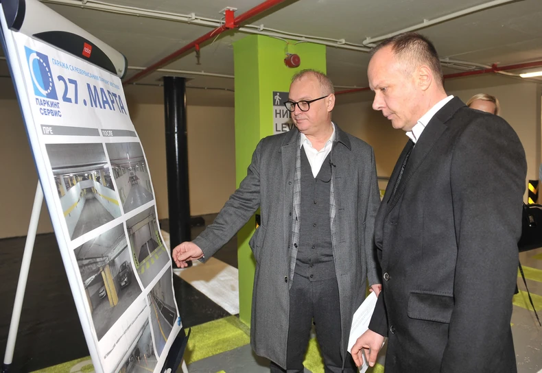 Zamenik gradonačelnika Goran Vesić i direktor JKP "Parking servis" Andrija Čupković obišli su danas rekonstruisanu stanarsku garažu u Ulici 27. marta 43-45, u koju je uloženo 35 miliona dinara.