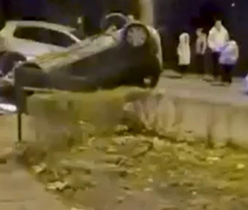 Kako se vidi na snimku sa lica mesta, auto stoji prevrnut na krov, nasred ulice.