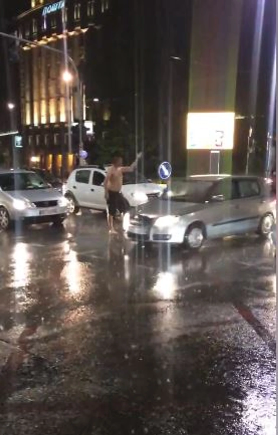 Zbog nevremena je semafor na uglu Takovske ulice i Bulevara kralja Aleksandra prestao da radi, pa je nastao opšti kolaps u tom delu grada. Dok su vozači čekali saobraćajnu policiju, jedan sugrađanin odlučio je da preuzme stvar u svoje ruke. Izuo se, skinuo se do pojasa, izašao je iz automobila i - sam regulisao saobraćaj.