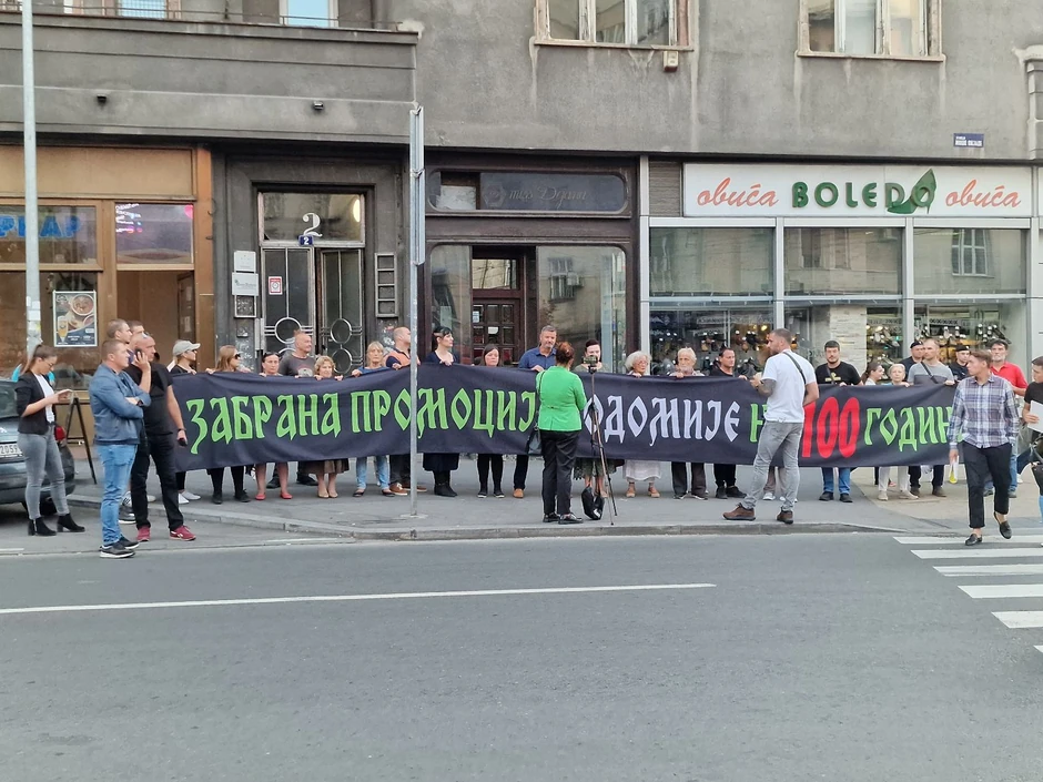 Oni nose veliki transparent sa natopisom "zabrana promocije sodomije na 100 godina".