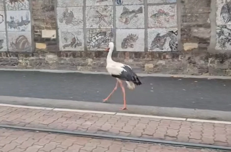 Beograđani su danas imali priliku da u centru grada, kod Zoološkog vrta, vide neuobičajen prizor - odraslu rodu kako mirno šeta trotoarom, i "kao pravi stanovnik čeka tramvaj".