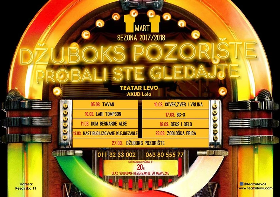 "Džuboks pozorište - Probali ste, gledajte" zanimljiv je niz događaja koji se organizuje povodom Svetskog dana pozorišta i sastoji se iz dva dela.