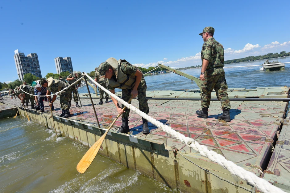 - Kako bi se izbegle neželjene i nepredviđene situacije na pontonskom mostu i oko njega tokom 24 sata zadejstvovana je dežurna posada mosta koju čine dežurni logorske prostorije, njegov pomoćnik i četiri osmatarača koji se smenjuju na svaka dva sata - kaže potporučnik Nebojša Milovanović, komandir Drugog pontonirskog voda i komandant mostnog mesta prelaska.