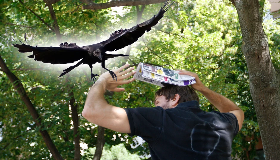 On napominje da iako nama izgleda kao napad, iz perspektive vrana to je odbrana.