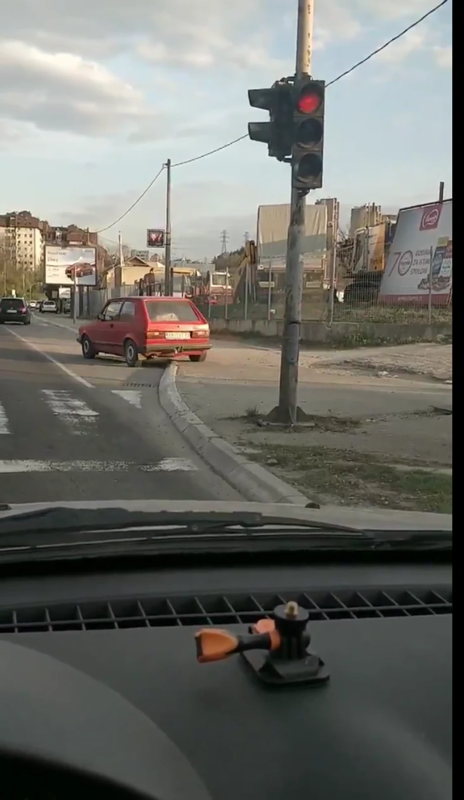 Naime, ovaj vozač je, da bi zaobišao kolonu i izbegao čekanje na semaforu, prešao preko trotoara, došao do autobuskog stajališta i tu se posle semafora regularno uključio na kolovoz.