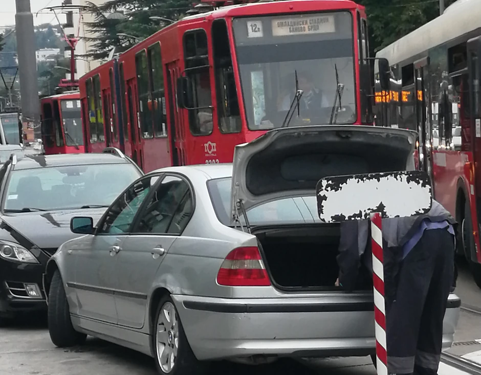 Reporteri "Blica" pre par dana su prisustvovali neverovatnoj situaciji u Požeškoj ulici na Banovom brdu, odmah pored tamošnje pijace. Tu je tramvaje blokirao automobil koji je njegov vlasnik do pola parkirao na šinama!