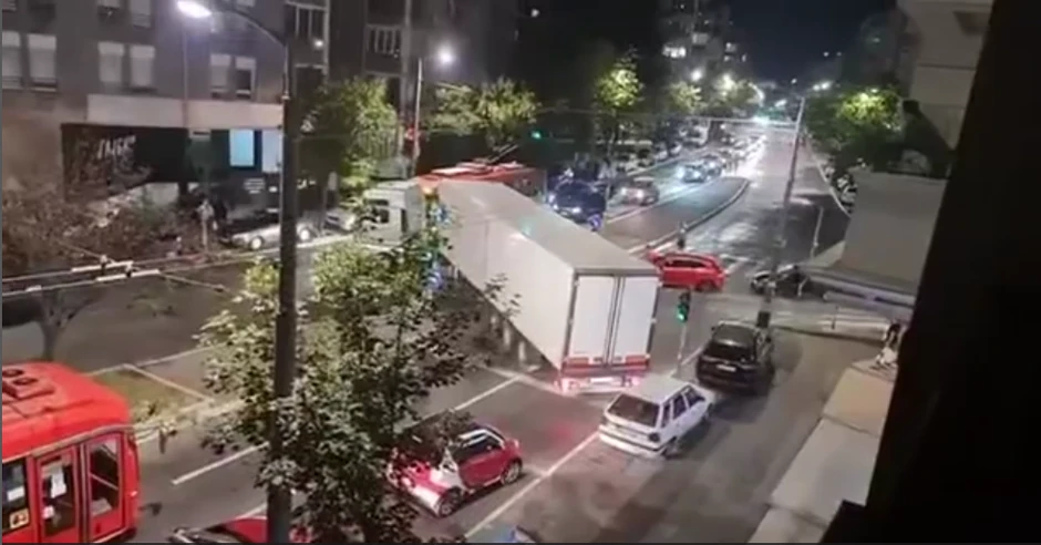 U Ulici Vojislava Ilića u beogradskoj opštini Voždovac večeras je došlo do nesvakidašnje situacije i zastoja u saobraćaju nakon što se šleper, posle sudara, zaglavio na raskrsnici te i Ulice Stanislava Sremčevića.