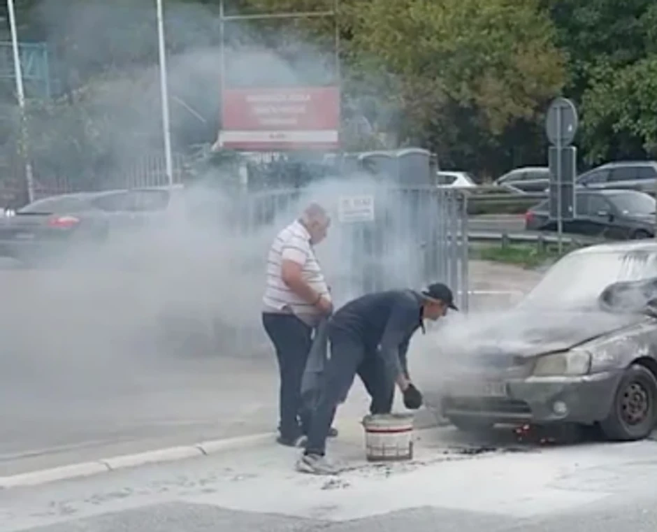 Nedaleko od dušanovačke pijace u Beogradu jutros oko pola 10 časova zapalio se jedan automobil, a u pomoć je iz obližnjeg auto servisa odmah priskočio automehaničar Dejan Rajović.