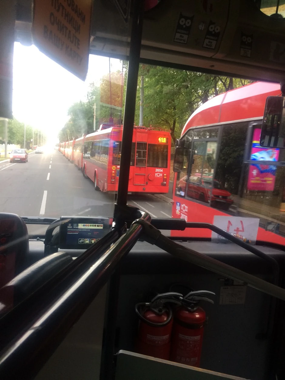 Zbog prekida struje na kontaktnoj mreži u Bulevaru kneza Aleksandra Karađorđevića trenutno je u zastoju čitava kolona trolejbuskih vozila.