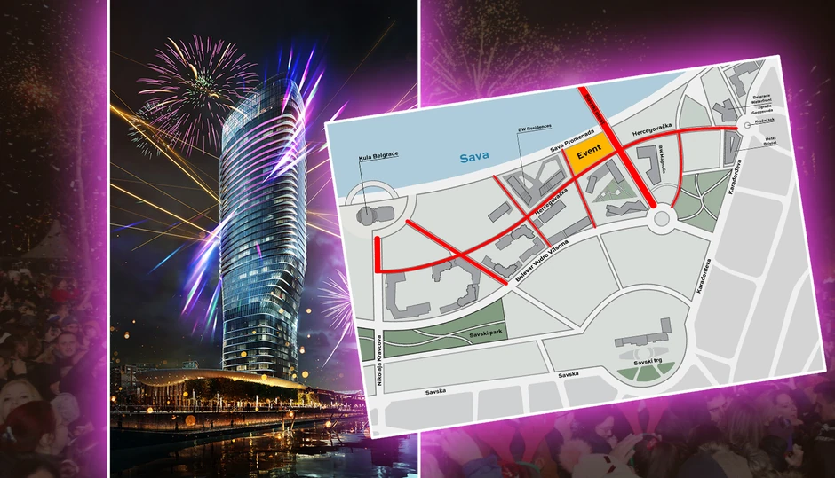 Vlasnici vozila moraće da uklone svoja vozila iz Hercegovačke ulice, bočnih parkinga i sa parkinga Sava Play najkasnije do 14 sati u petak, 31. decembra. Hercegovačka se za saobraćaj potpuno zatvara od 18 sati.
