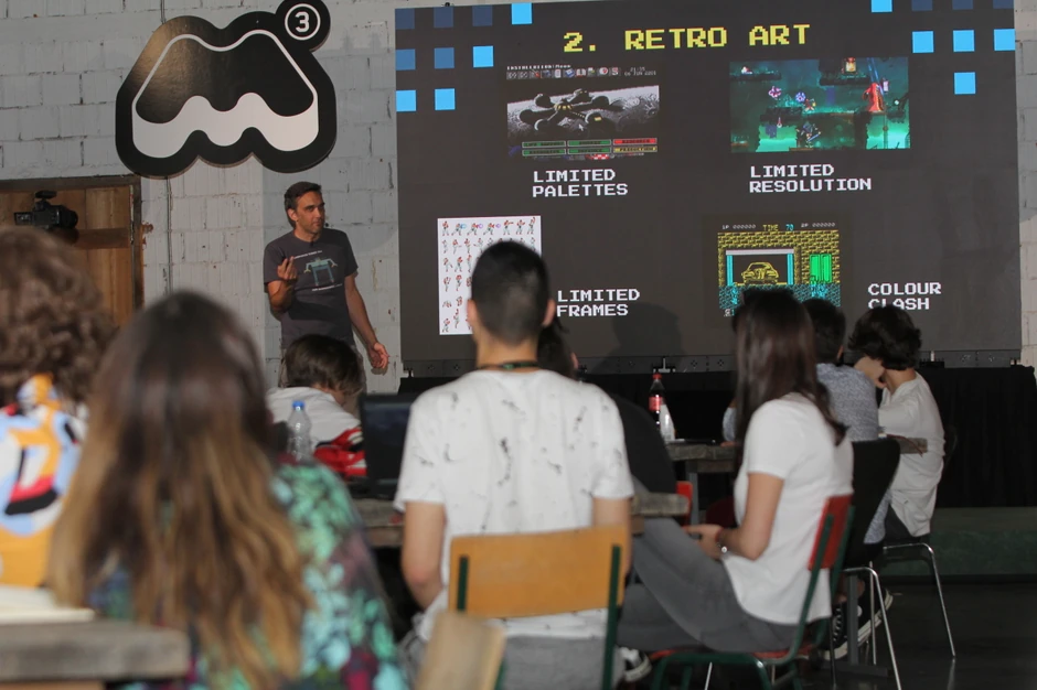 Nakon otvaranja manifestacije, usledilo je motivaciono predavanje Majkla Movela, gejming stručnjaka iz Velike Britanije, o retro igrama čiji sadržaji su i danas inspiracija za stvaranje modernih, složenijih video igara. Ovo je bio odličan uvod za početak 48-časovnog takmičenja u Dorćol Platz-u. Čak ni vremenske neprilike nisu remetile fokusiranost 12 takmičarskih timova koji su predano i euforično danonoćno radili na razvoju svojih igara, kao ni sjajnu atmosferu diskusije, druženja, smeha i pozitivne energije. Podršku da u tome da ideje postanu igre pružali su im mentori iz kompanija Playstudios Europe, Nordeus i Mad Head Games.